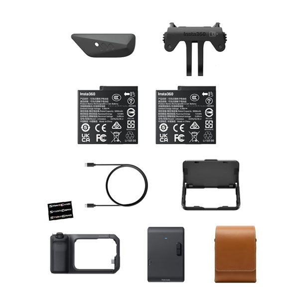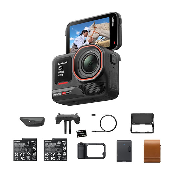 - El paquete de impresión flash incluye: 1 Insta360 Ace Pro 2, 1 kit Xplorer Grip Pro, 1 impresora de bolsillo, 1 funda de cuero clásica, 1 capucha de pantalla abatible, 2 baterías, 1 cable de carga